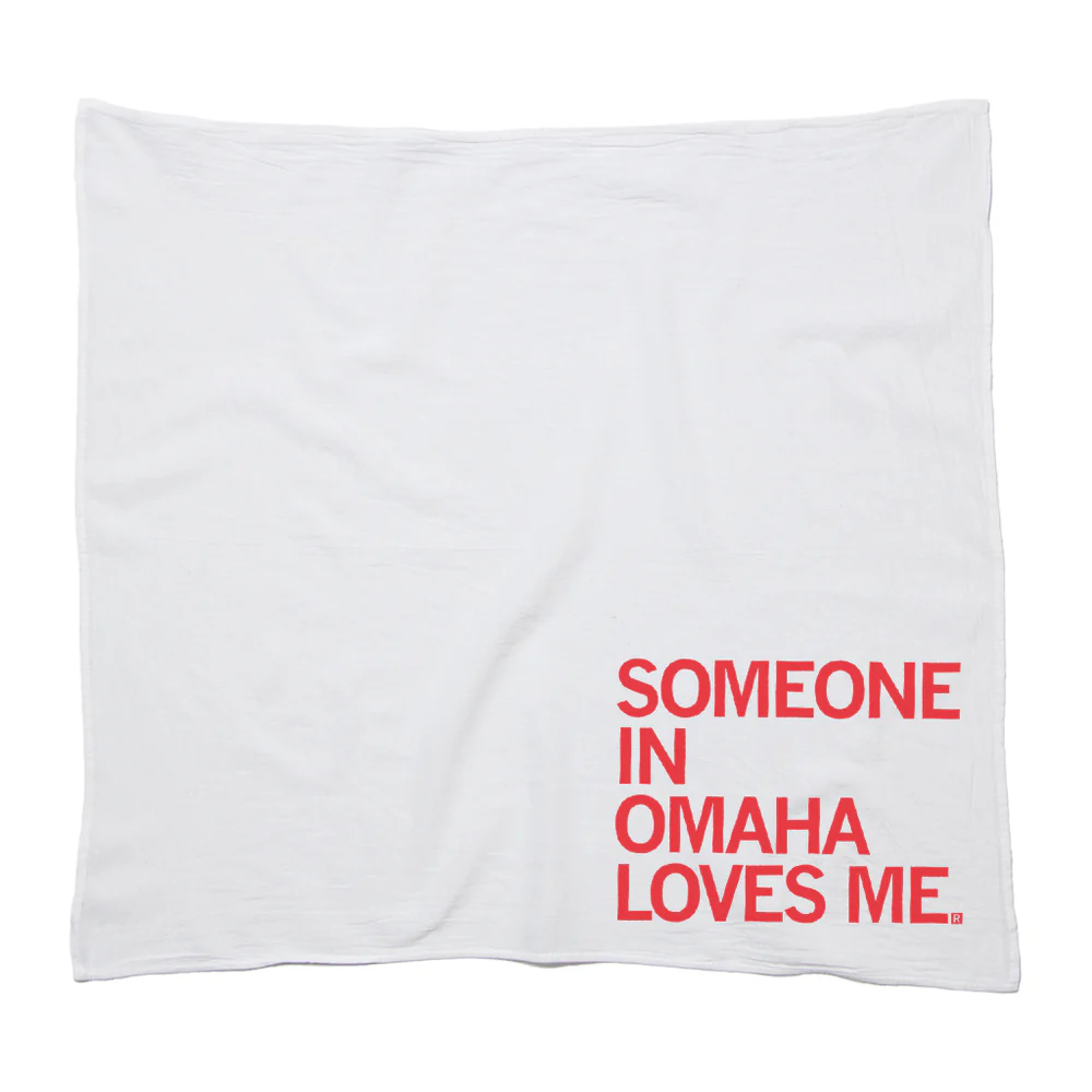 Someone in Omaha Loves Me. Red Screen Print on a 28" x 29" flour sack kitchen towel.