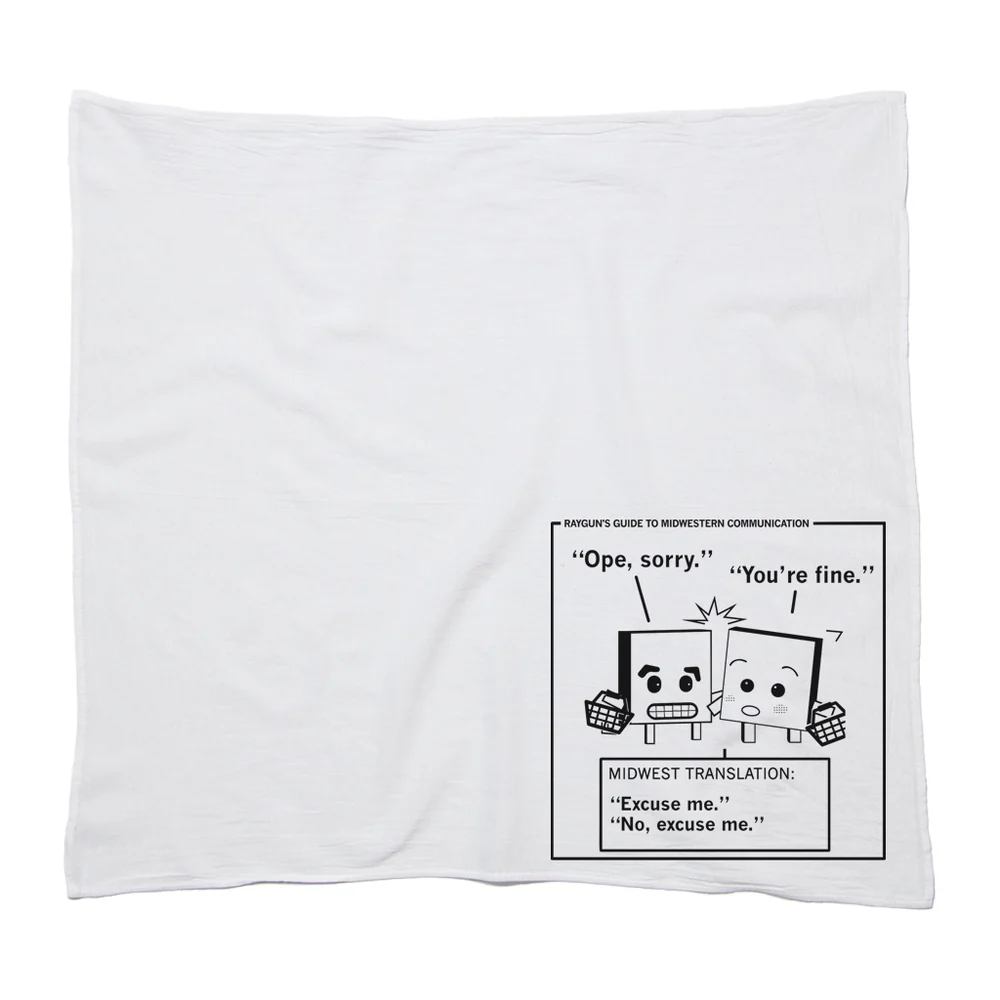RAYGUN's Guide to Midwestern Communication: Ope, sorry.Black Screen Print on a 28" x 29" flour sack kitchen towel.